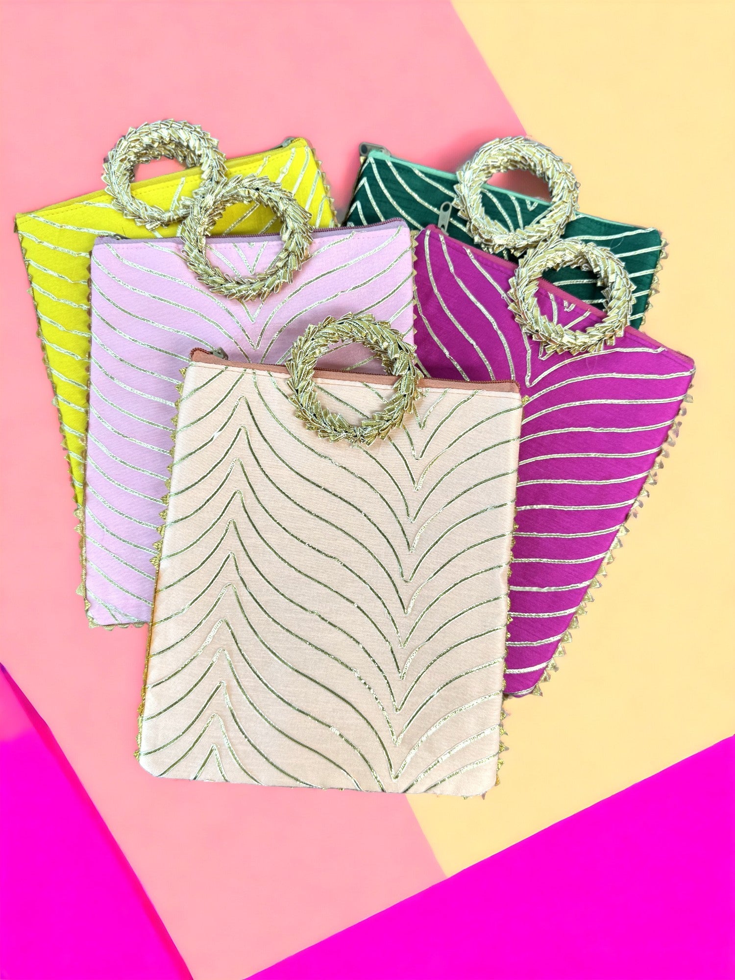 Gota Patti Bag With Handle & Zipper, Set of 6