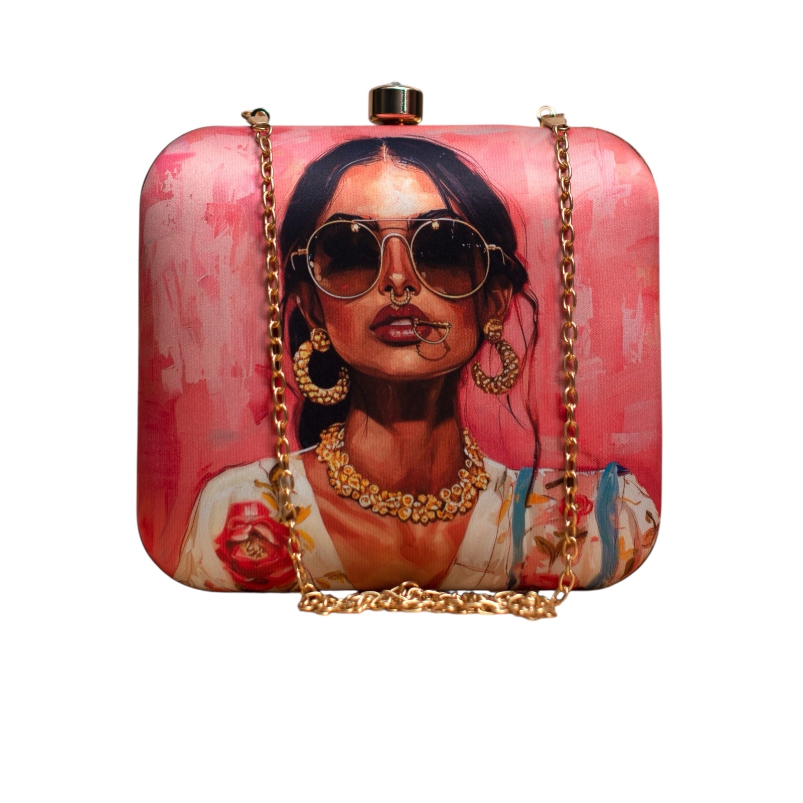 Indian Swag - Clutch with Women Portrait with Heavy Jewelry & Sunglasses
