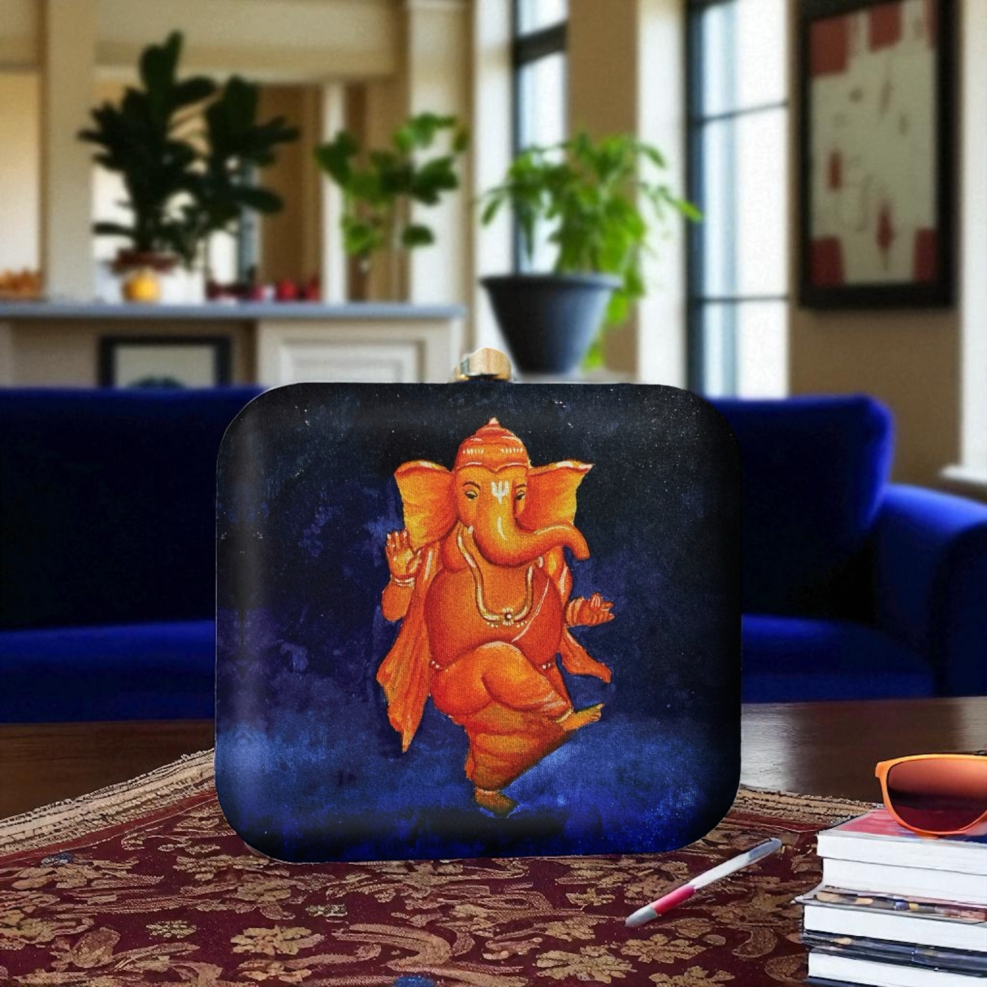 Indian Ethnic Designer Box Clutch with Lord Ganesha