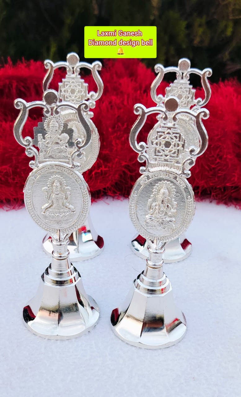 Beautiful German silver Bell 5*2 inches Long with Lord Ganesh & Goddess Laxmi design on it.