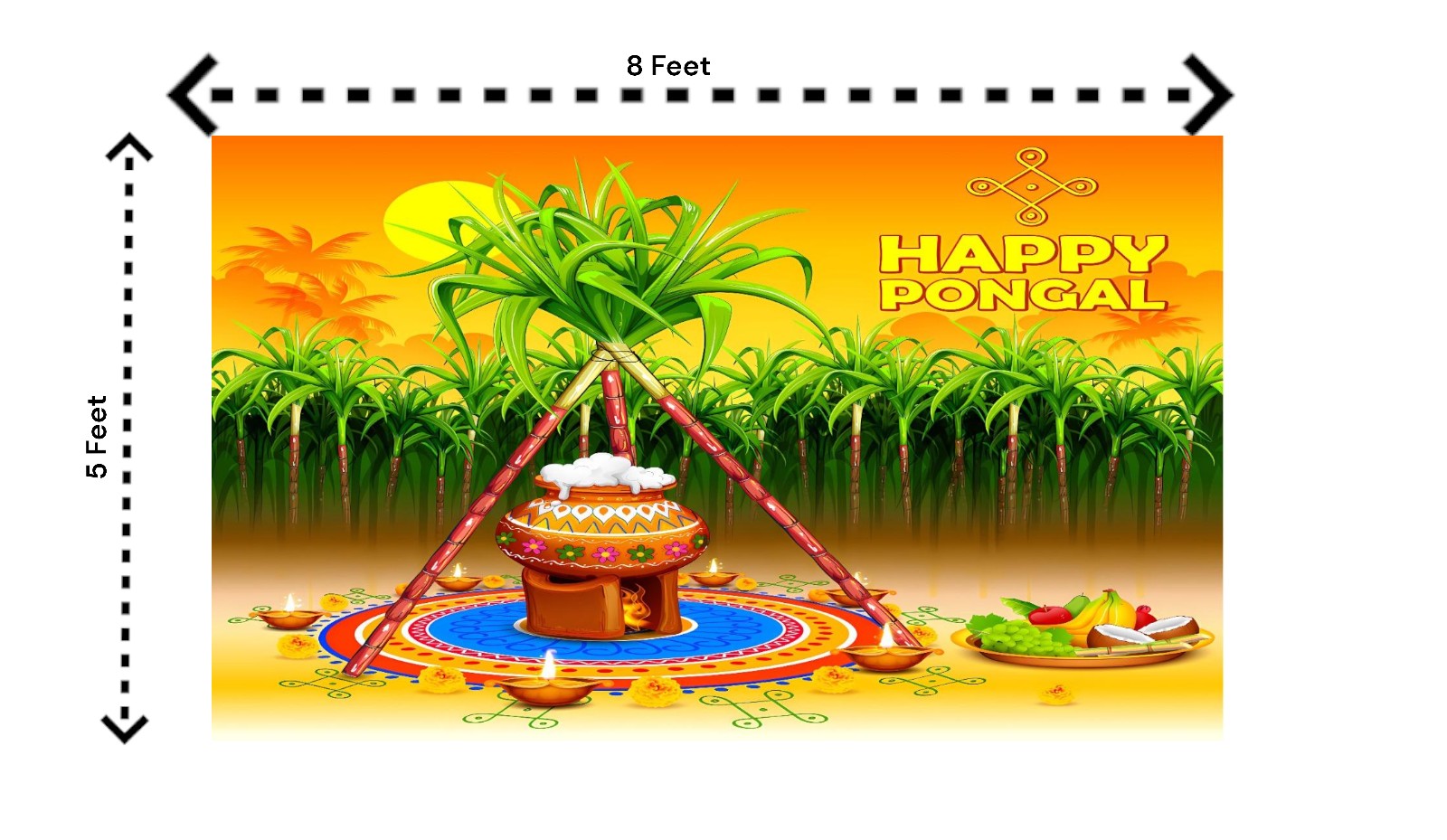 5x8 Feet Fabric Reusable Happy Pongal Backdrop Banner for Pongal Festival