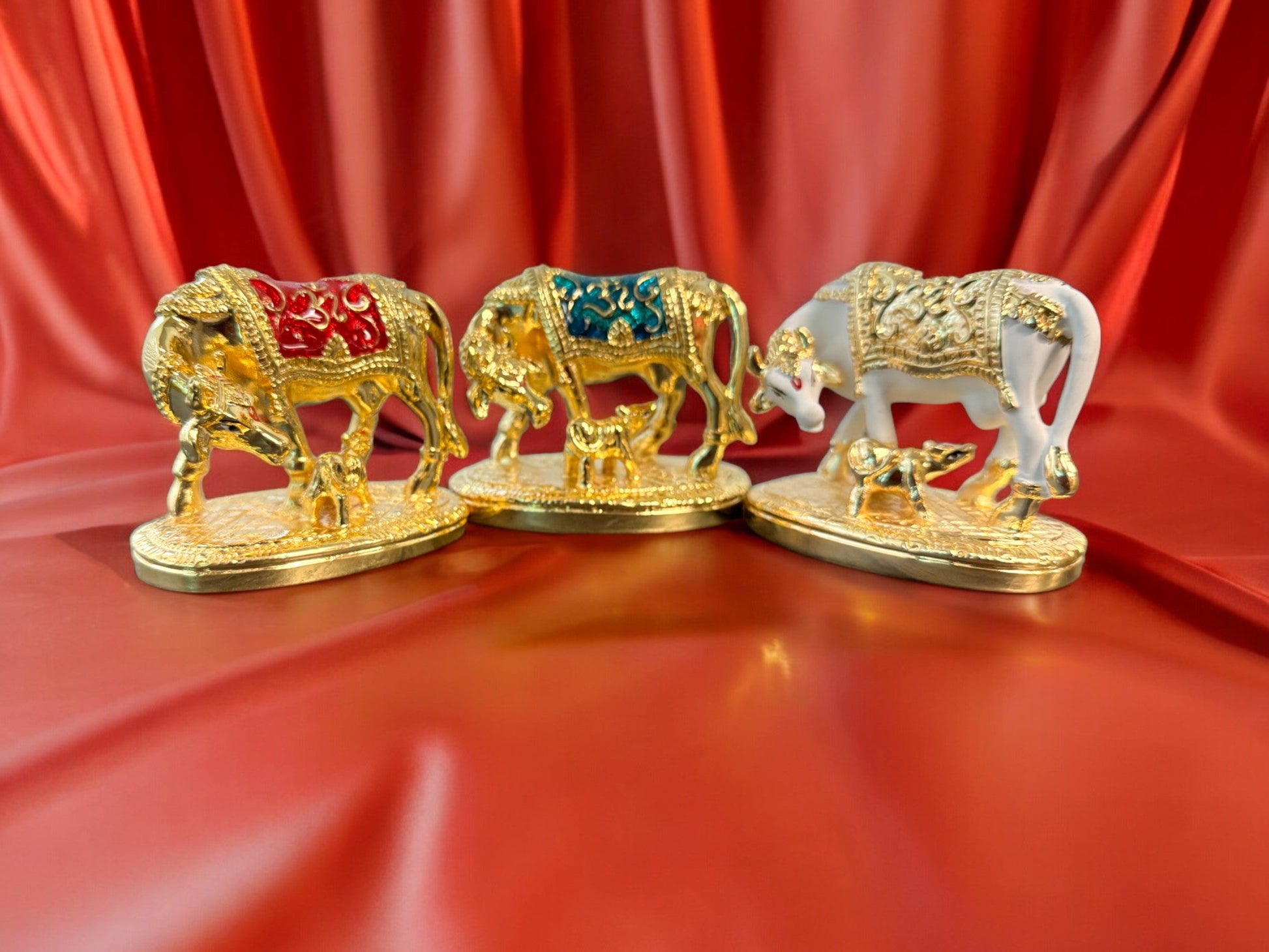 High quality Cow & Calf (Goddess Kamdhenu) statue / idol for car dashboard, office table, home decor & mandir or temple pooja.