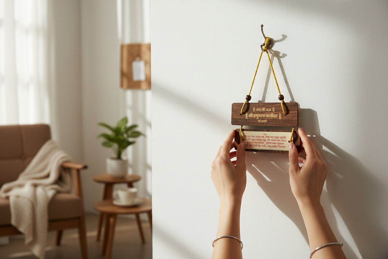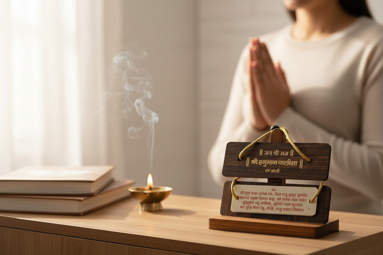 Aarti Sangrah & Hanuman Chalisa Pocket Book With Wooden Top, Handcrafted Wooden Pothi Religious Booklet for Devotional Reading