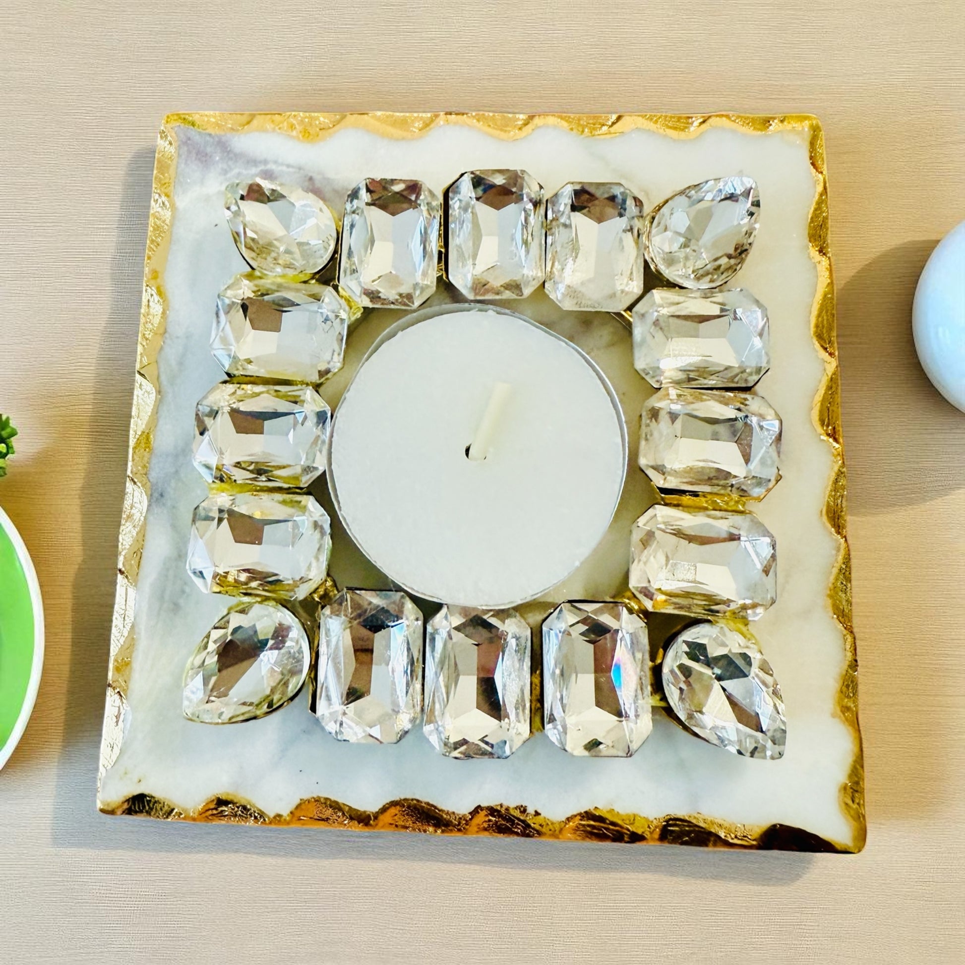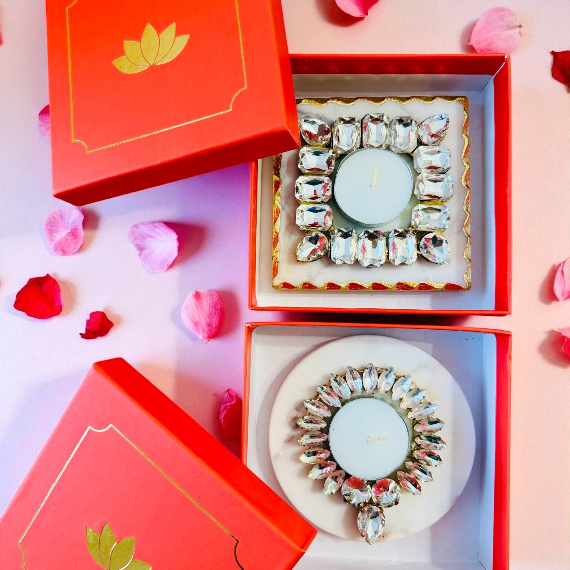 Kundan T Light Holder with Box Base Marble - Housewarming/Host Gift /Diwali Gift